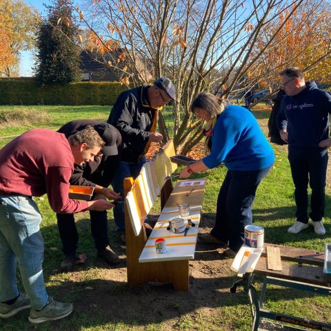 Op zaterdag 8 november stond een bijzondere activiteit voor de gemeenteraad van Nederweert op het programma, waarin verbinding en respect centraal stonden. De raadsleden gaven samen kleur aan een ontmoetingsbankje in Kanaalpark De Heerlijckheid: een symbool van acceptatie en inclusie in de gemeente.