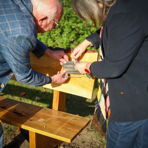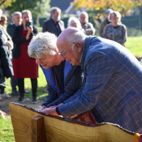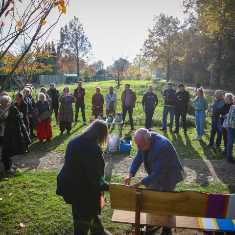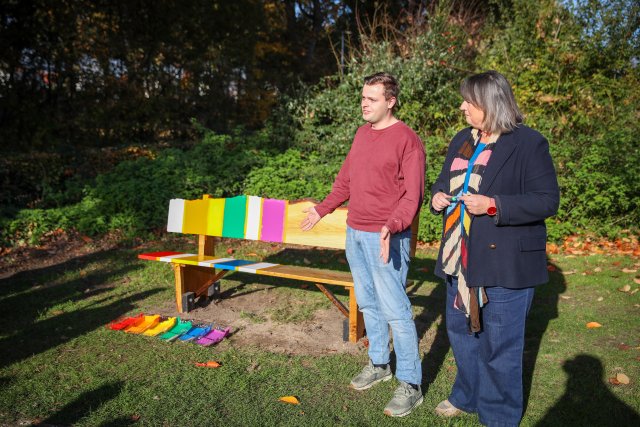 De raadsleden gingen zelf aan de slag en gaven het ontmoetingsbankje een kleurrijk regenboogjasje. Aansluitend werd het bankje onthuld door burgemeester Birgit Op de Laak, leden van de gemeenteraad en inwoner Johan Evers.