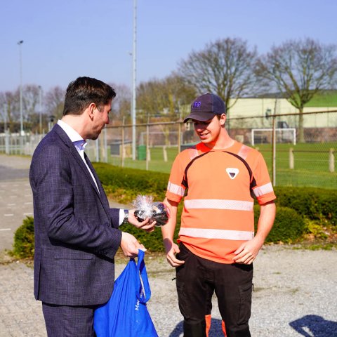 Woensdag 4 maart heeft wethouder Franssen namens de gemeente Nederweert de medewerkers van Van Kaathoven in het zonnetje gezet. Tijdens hun pauze ontvingen zij, in het kader van de Week van de Afvalhelden, een attentie als blijk van waardering voor hun inzet.