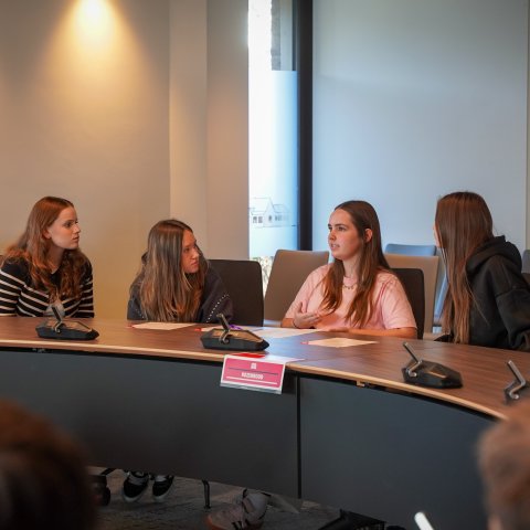 Yuverta-leerlingen debatteren als gemeenteraad over festivalplan